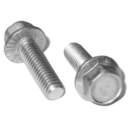 A flange bolt is like a flange nut in that it has a circular flange that functions as a built-in washer. There are different types of flange bolts: partial thread, full thread, full thread and serrated, and oversize full-thread and serrated. Flange bolts have hexagonal heads which is driven by a wrench.